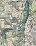 Several versions of maps will be available, showing the tribal ownership of the riverbed. One set of maps was created by the Cherokee Nation GIS Dept. utilizing recent aerial photos and Corps of Engineers Navigational Charts. The Charts showing river mile markers and infrastructure were super-imposed upon the photo images. Then the GIS wizards added section, township, and range information to create a very usable series of maps.